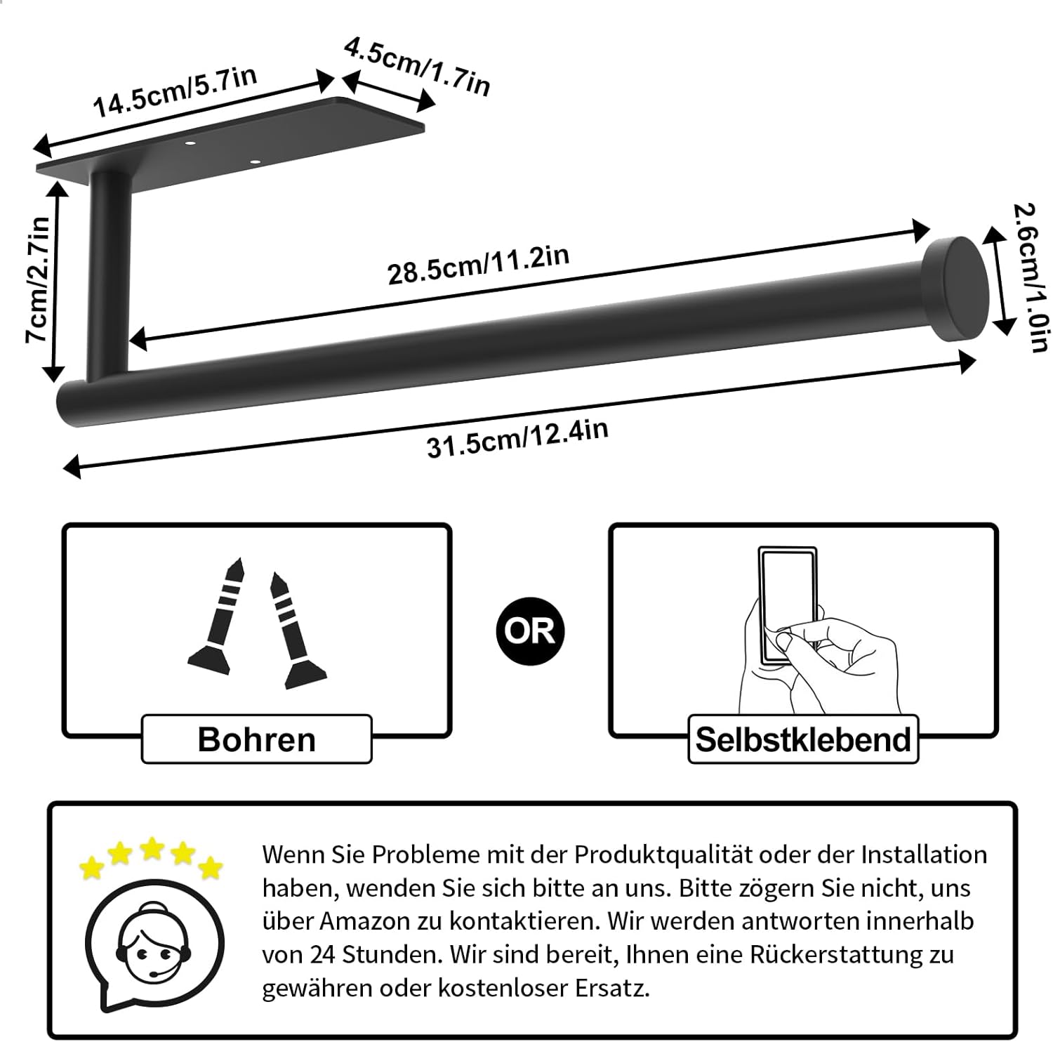 - 【Kundendienst】 Wenn Sie Hilfe von uns benötigen oder Fragen zum Küchenrollenhalter unter dem Schrank haben, können Sie sich gerne an uns wenden. Wir werden Ihnen innerhalb von 24 Stunden eine zufriedenstellende Lösung anbieten.